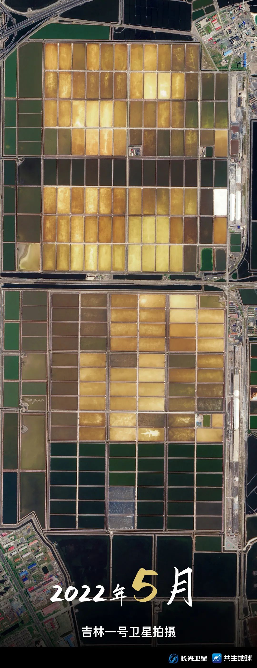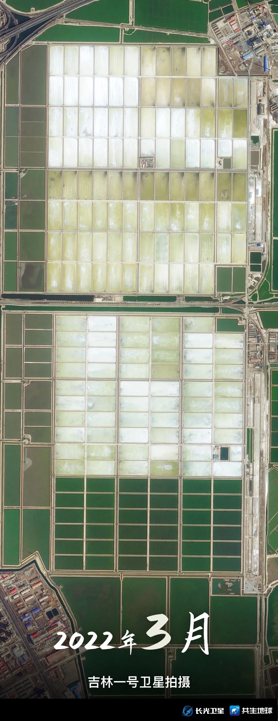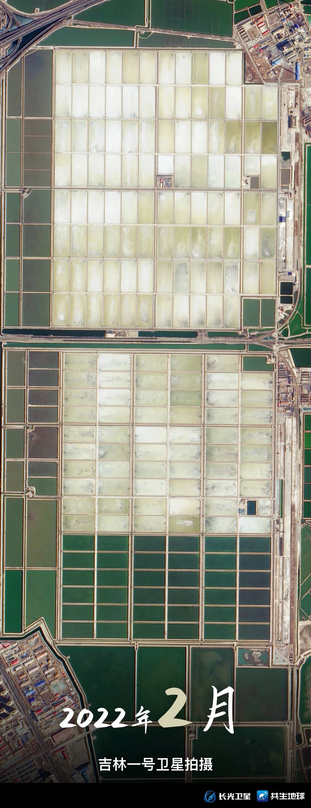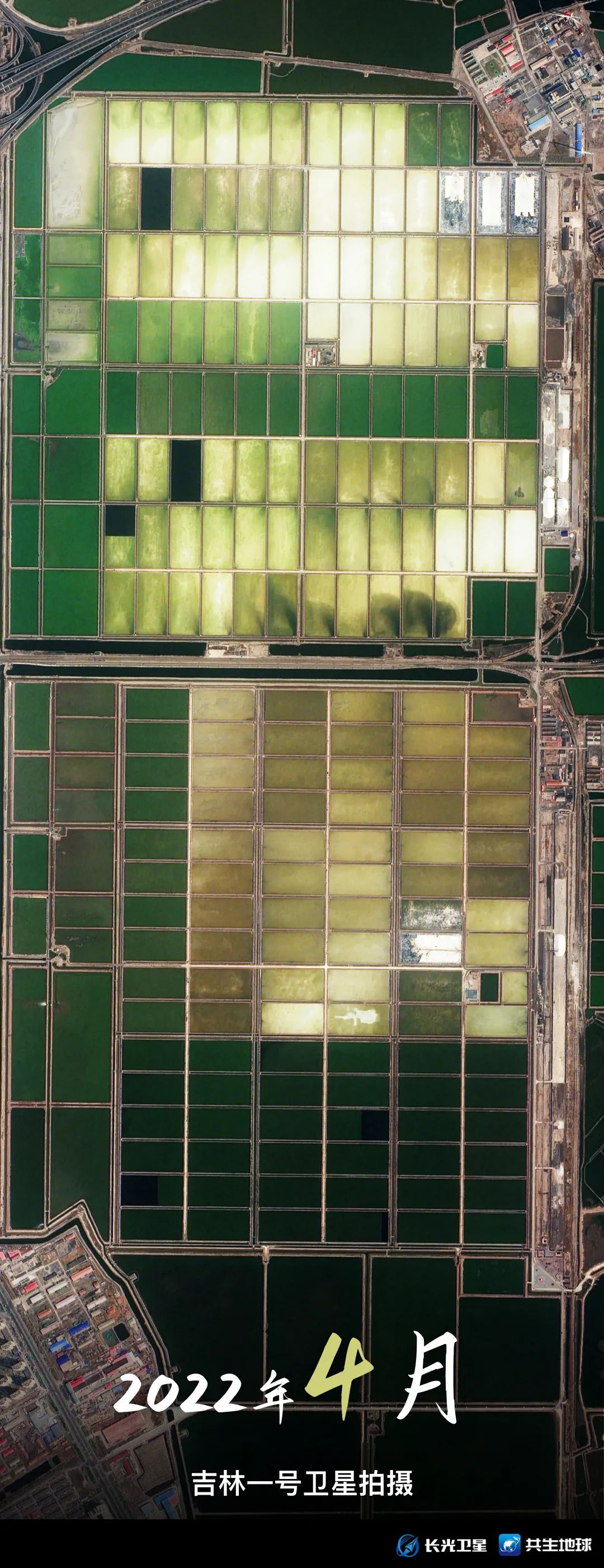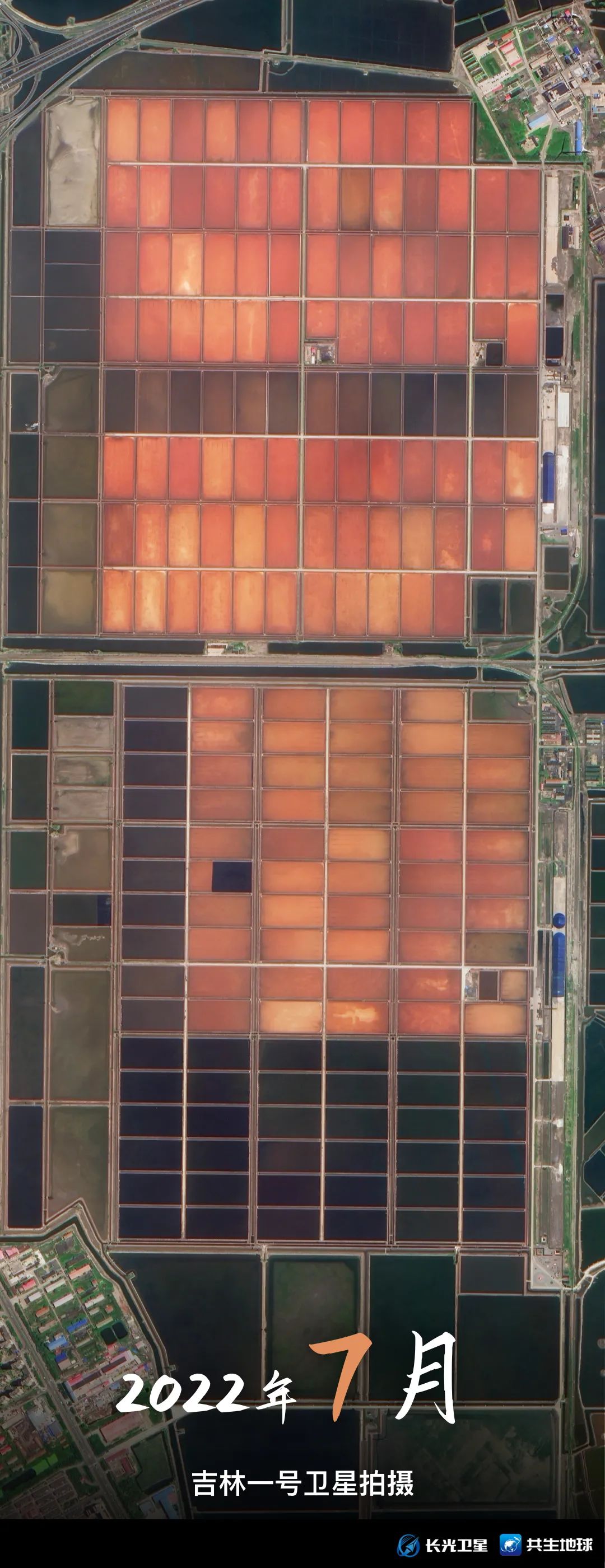 跟随吉林一号卫星视角,带你回顾1月至9月,天津长芦汉沽盐田“调色盘”的颜色变化。你更喜欢哪个月份的“色号”呢?