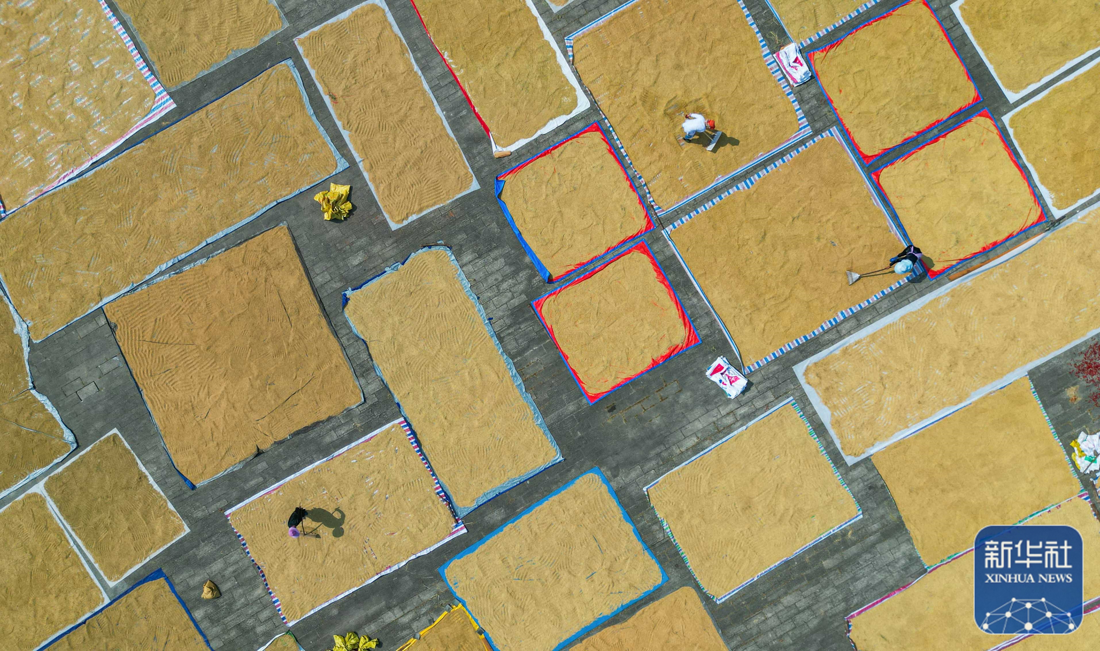 9月17日,村民在贵州省黔东南苗族侗族自治州从江县高增乡小黄侗寨晾晒稻谷(无人机照片)。新华社发(卢忠南 摄) 金秋时节,农民忙着收获晾晒,到处是一派丰收景象。 9月17日,村民在贵州省黔东南苗族侗族自治州丹寨县兴仁镇岩英村晾晒玉米。新华社发(黄晓海 摄) 9月17日,村民在贵州省黔东南苗族侗族自治州从江县刚边壮族乡刚边村晾晒稻谷(无人机照片)。新华社发(罗京来 摄) 9月17日,村民在贵州省黔东南苗族侗族自治州丹寨县兴仁镇摆泥村晾晒稻谷。新华社发(黄晓海 摄) 9月17日,村民在贵州省黔东南苗族侗族自治州从江县高增乡小黄侗寨晾晒稻谷(无人机照片)。新华社发(吴德军 摄) 9月17日,村民在贵州省贵阳市开阳县禾丰乡马头村收割水稻。新华社发(袁福洪 摄) 9月17日,山东省临沂市郯城县郯城街道农民在晾晒收获的玉米(无人机照片)。新华社发(张春雷 摄) 编辑:邓坚 郑雅宁 金怡 张曼怡