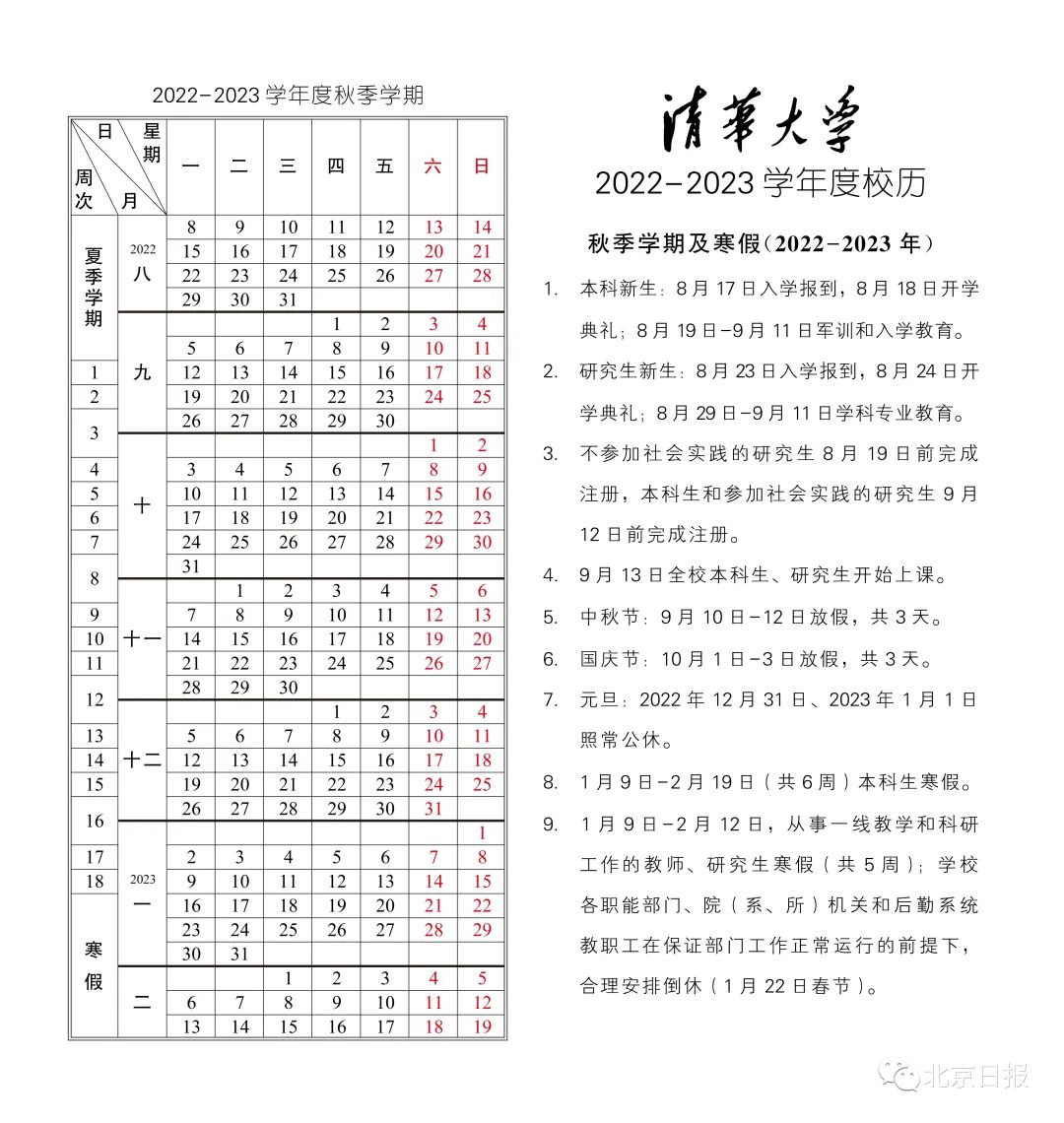 清华大学2022-2023学年度校历显示,国庆节:10月1日至3日放假,共3天。10月8日至9日,照常公休。