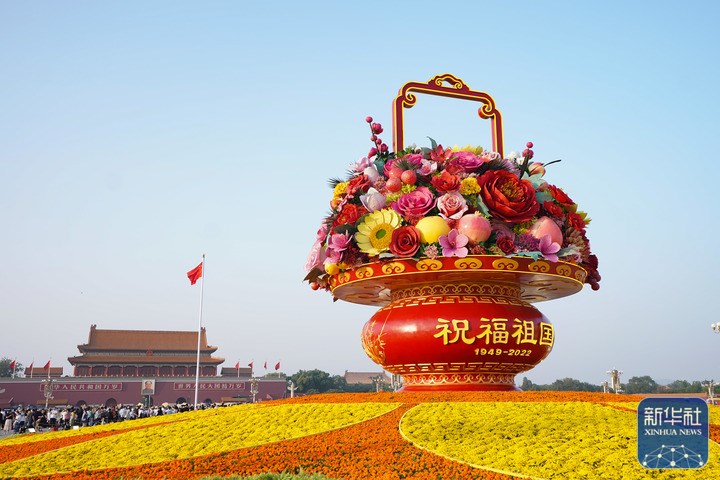 “祝福祖国”巨型花果篮亮相天安门广场。详情>>