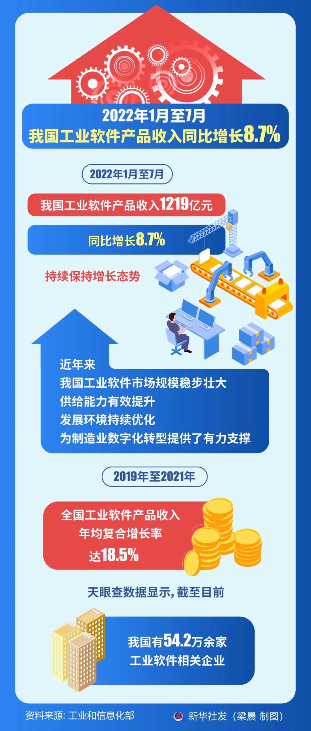 工业和信息化部近日发布的数据显示,今年1月至7月,我国工业软件产品收入1219亿元,同比增长8.7%,持续保持增长态势。详情>>