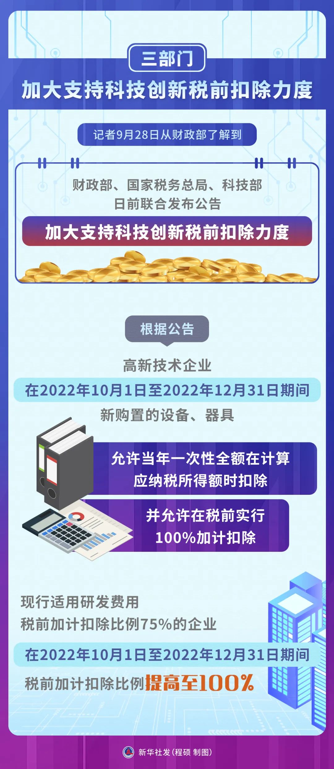 财政部、国家税务总局、科技部日前联合发布公告,加大支持科技创新税前扣除力度。