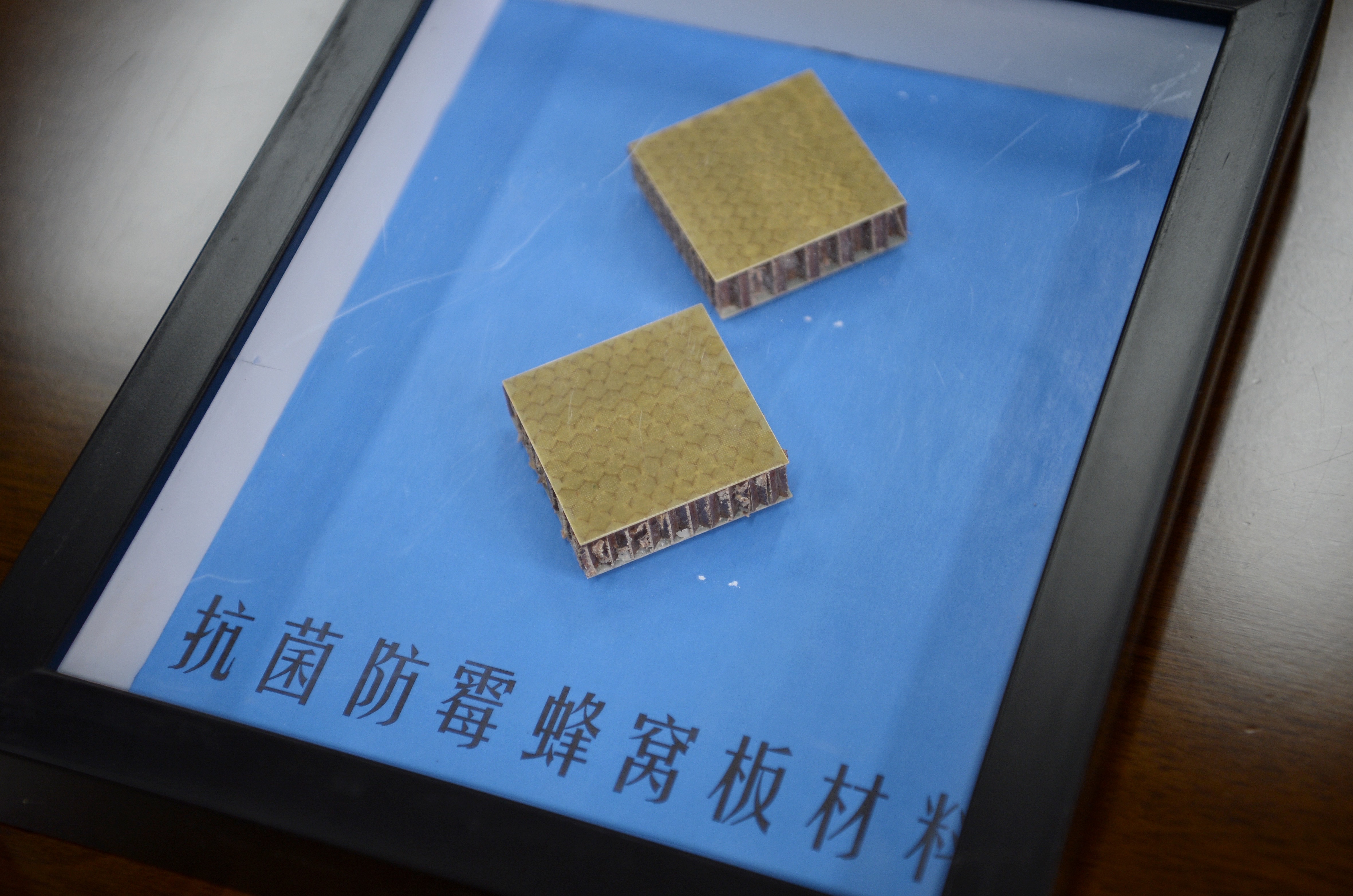 这是中国航天科技集团有限公司第七研究院第七设计部宇航团队研发的抗菌防霉蜂窝板材料(10月19日摄)。新华社记者 刘坤 摄