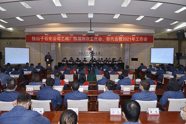 1月30日,乙烯厂四届四次职代会、工代会暨2021年工作会召开。公司副总工程师、乙烯厂厂长李冀代表乙烯厂领导班子作了题为《把握市场脉搏 稳定生产局面 夯实专业基础 打造卓越团队 全面实现安全高效运行》的工作报告。全体职工代表、劳动模范、提质增效先进项目代表和个人、安全文明礼仪标兵、发现隐患受表彰者代表286人参加了大会。
