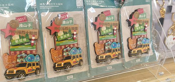 独库礼品店经理丁秋霞说:“冰箱贴卖得特别好,还有面膜及本地产的独库大礼包干果都挺受顾客欢迎的。”