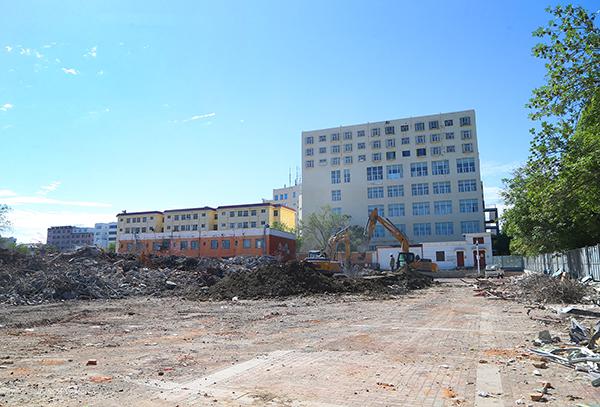 5月20日中午,记者看到两台施工机械正在加紧工作,明珠影剧院拆除工程接近尾声。