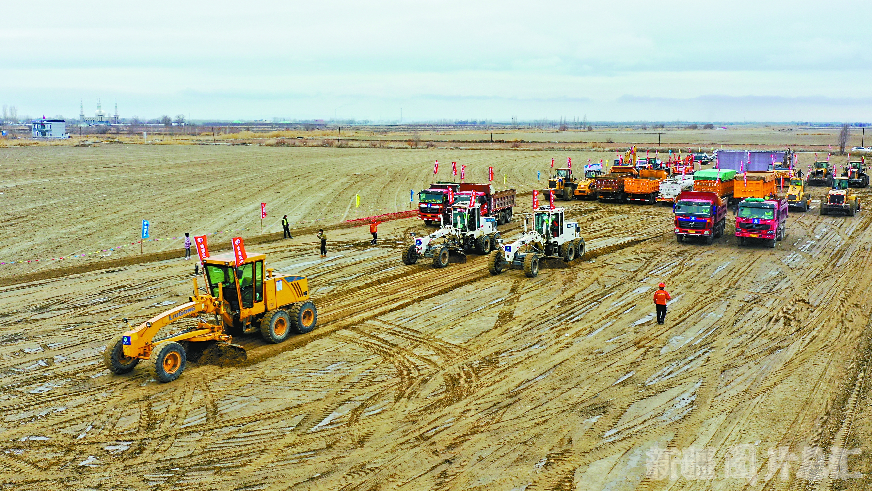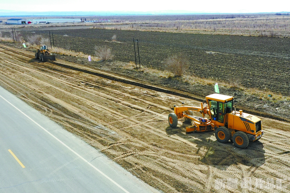 3月20日,S21阿勒泰至乌鲁木齐沙漠高速公路建设项目复工。S21阿勒泰至乌鲁木齐公路起自北屯市,经过福海县、五家渠市、昌吉回族自治州,止于乌鲁木齐市,全长342.538公里,穿越荒漠及沙漠路段长达150余公里,采用高速公路标准建设,计划于2022年8月底完工。□本报全媒体记者 谢龙摄