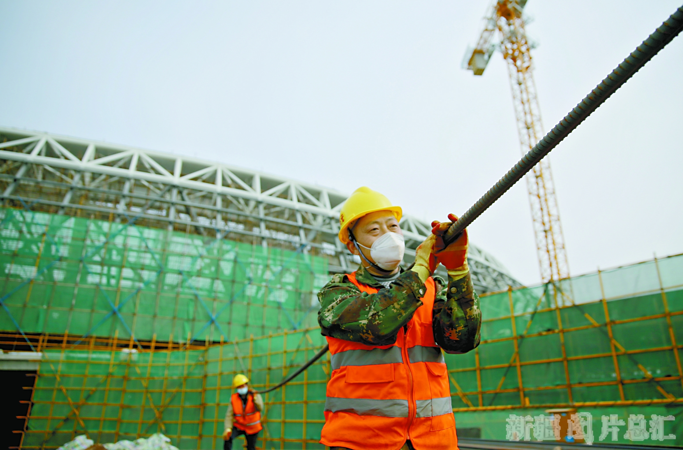 3月19日,工人在乌鲁木齐奥林匹克体育中心施工。该体育中心分别由体育馆、体育场、游泳馆、田径馆等六大建筑单体组成。截至目前,已经完成80%的施工量。□本报全媒体记者 韩亮摄
