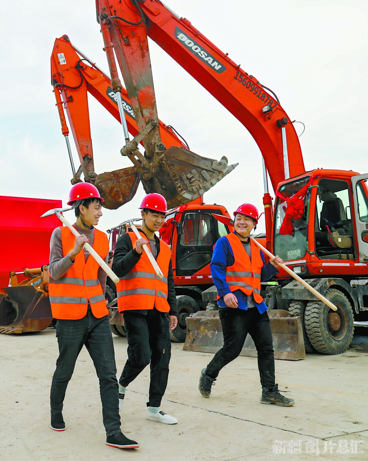 3月19日,工人在乌鲁木齐市米东区一建筑工地准备施工。当日,该区举行2020年度第一批重点项目开工仪式。首批重点新建项目涵盖新能源开发、房地产建设、文化旅游设施建设等工程。□本报全媒体记者 谢龙摄