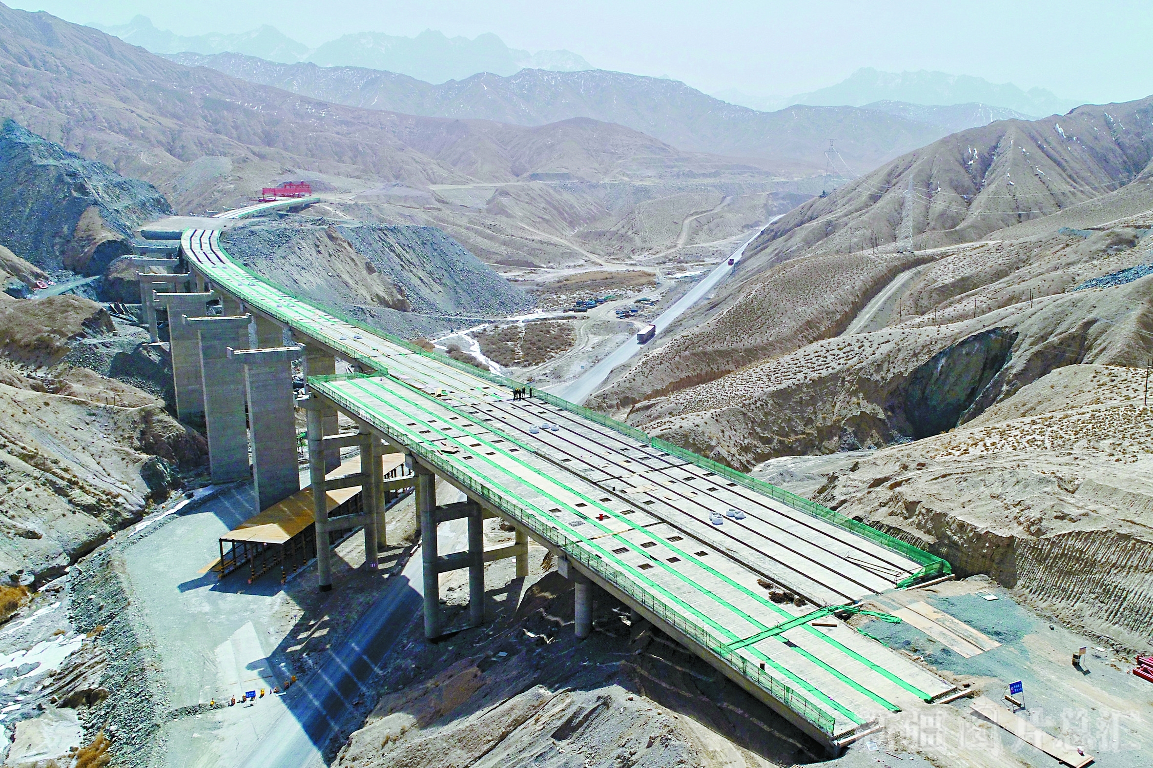 3月17日,工人在G315线依若公路青海沟二号桥架梁施工。依若公路起点位于依吞布拉克镇东3公里处,终点位于若羌县城北侧,与既有G218线相接,全长295.44公里,预计在2021年12月底建成通车。□王勇强摄