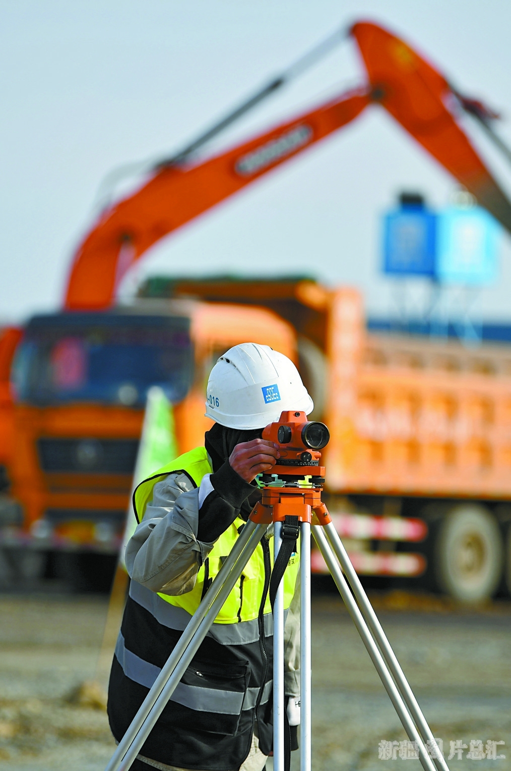 3月25日,工人在乌鲁木齐国际机场北区改扩建工程(航站区工程)施工现场测量。该工程目前已全面复工,计划今年底完成70%的施工量。□本报全媒体记者 邹懿摄