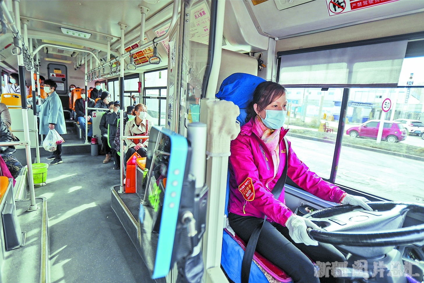 4月18日,乌鲁木齐市公交集团暖心1路公交司机牛艳在行驶途中不时提醒乘客戴好口罩,做好防护。