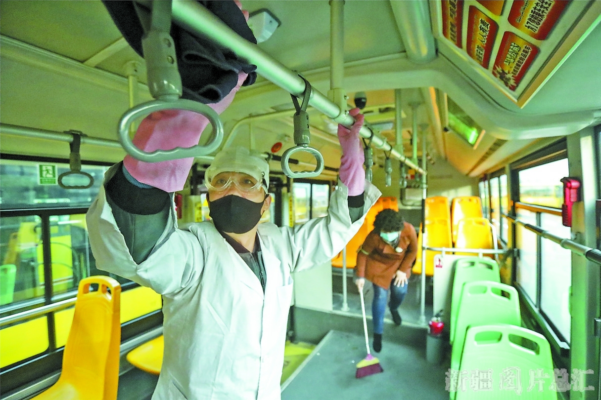 □本报全媒体记者谢龙 通讯员陈海珍 摄影报道 4月18日清晨6时30分,乌鲁木齐市公交集团经营三部的专职防疫员赵强已来到八道湾公交停车场,配好消毒水,对每辆公交车进行消毒。“我们23车队一共有98辆公交车,要赶在7时30分首班车发车前,完成所有车辆的消毒工作。”赵强说,“每天晚上,回停车场的车辆也是逐辆消毒,忙完末班车的消毒作业,往往都快凌晨1时了。工作虽然辛苦,但是能够让市民安全出行有保障,为疫情防控尽一份力,我们觉得很值得。” 乌鲁木齐市公交集团经营三部23车队在疫情防控期间,除了早晚两次对运营车辆集中消毒外,运营车辆每次返回车场后,要对车厢地板的各个角落进行喷洒,还要仔细擦拭座椅、扶手、拉环、投币箱、刷卡机等各个部位,确保不留死角。 23车队党支部书记吕兆明说:“疫情发生以来,我们每个公交人都积极地行动起来,确保城市公共交通系统正常运营。大家都想通过自己的努力,为早日战胜疫情贡献力量。”