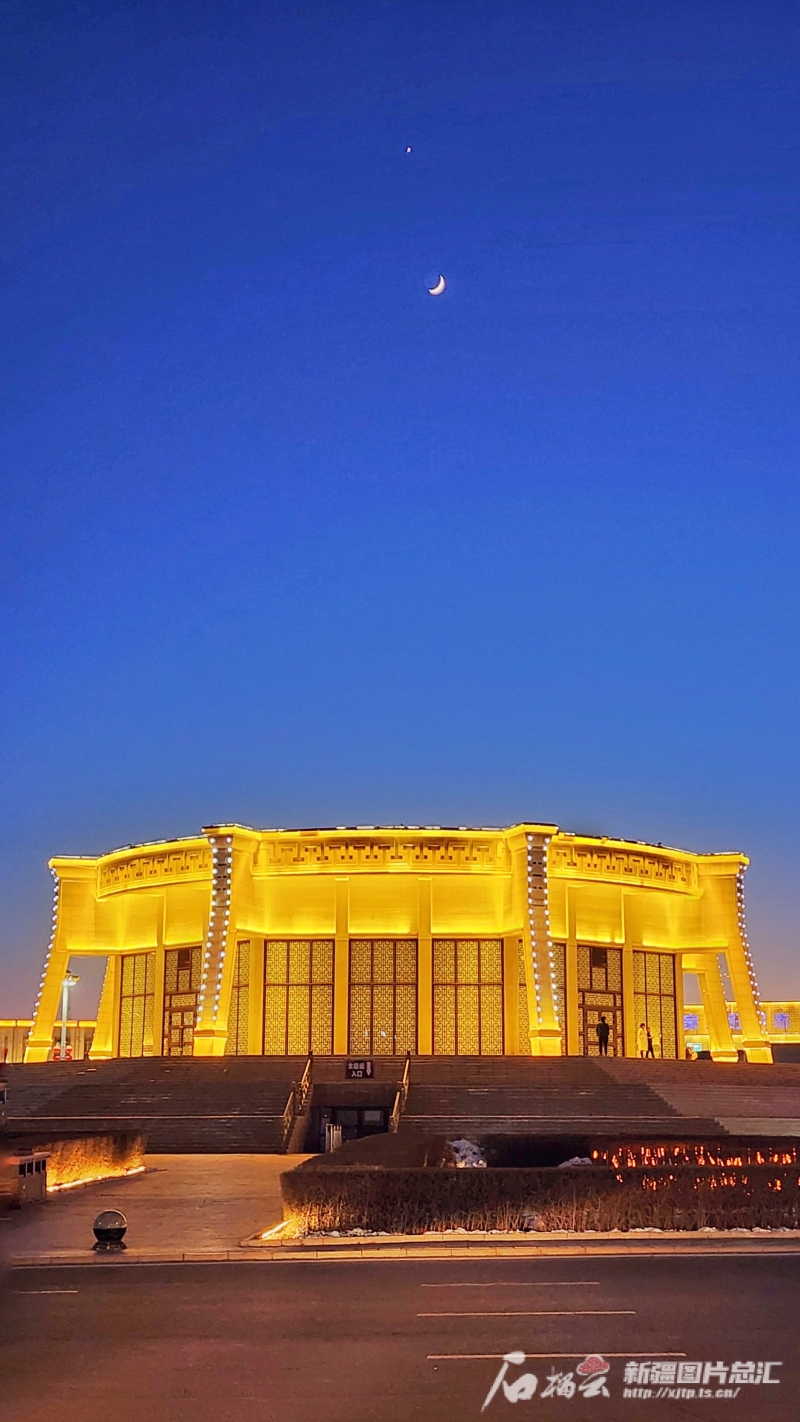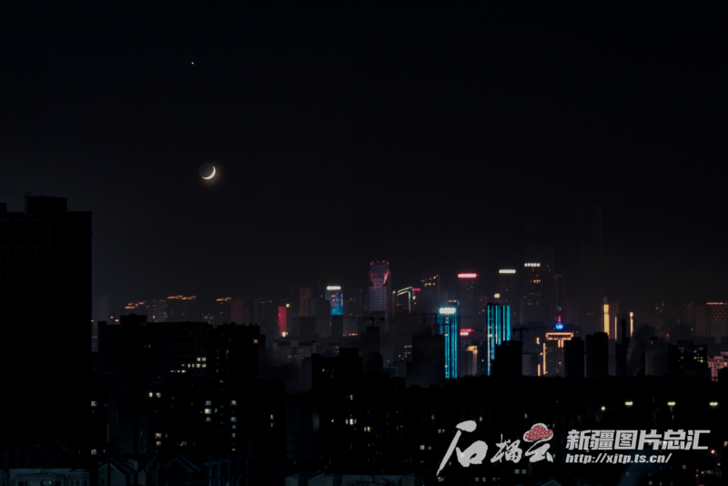 1月3日晚,特克斯八卦城,华灯初上,月亮伴着金星,呈现出一幅岁月静好的画面。赵丰收摄