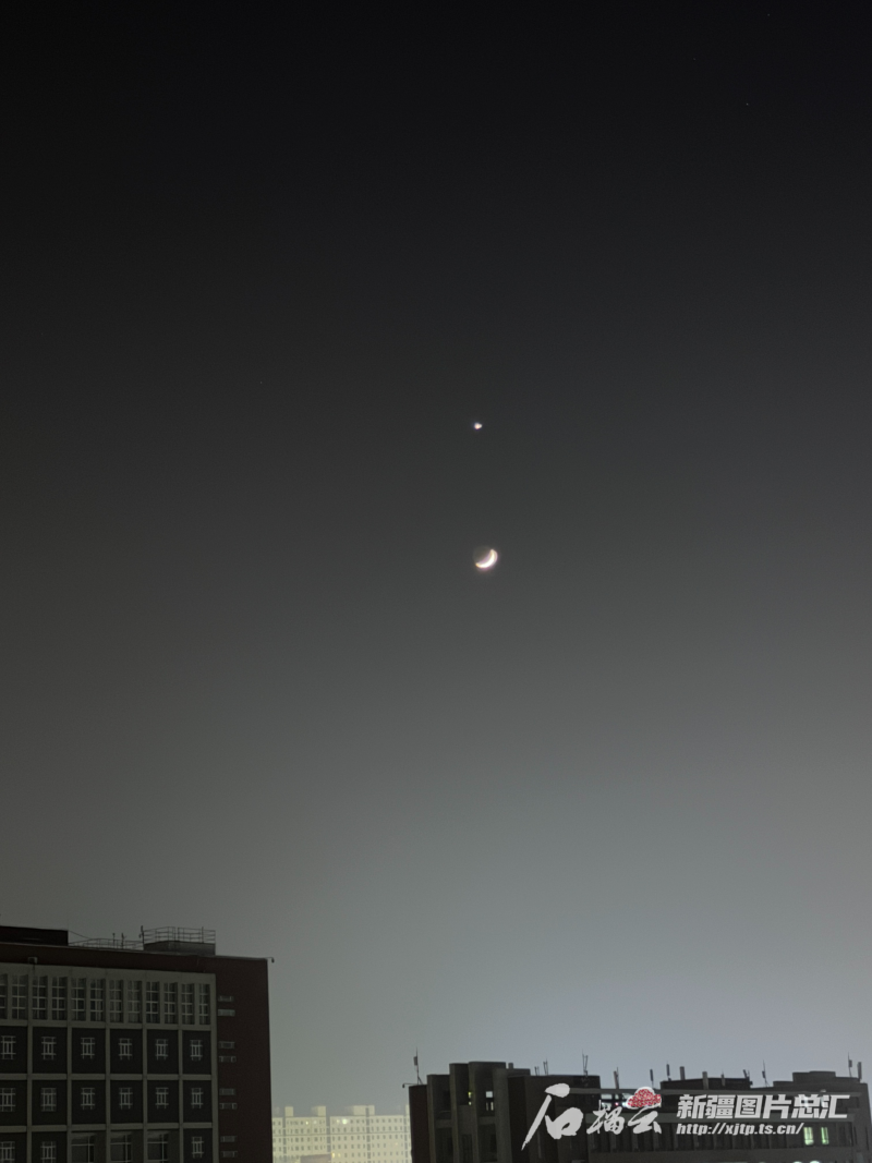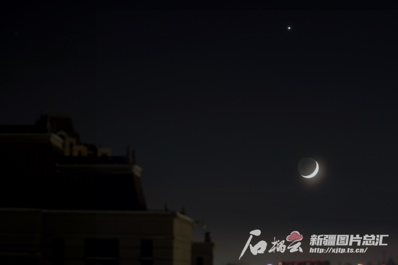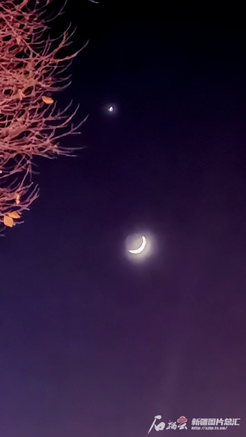 1月3日,乌鲁木齐上空金星伴月(二次曝光)。石榴云/新疆日报记者 豆兴军摄
