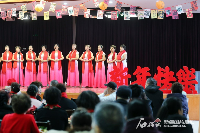 1月7日,乌鲁木齐市水磨沟区南湖南路街道南湖南路西社区与绿苑社区、劳动街社区、南湖广场社区共同举办“我们的村晚”社区文艺汇演,居民在演唱歌曲《今天是你的生日,中国》。石榴云/新疆日报记者 李雄心摄