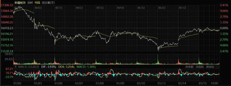 石榴云/新疆日报讯(记者 冉虎报道)1月15日收盘时,新疆板块指数16342.70,跌幅0.46%。当日,新疆板块17只股票上涨,39只股票下跌,5只股票平盘,上涨率27.87%,总换手率1.10%,总成交额67.83亿元。 一、指数变化趋势: