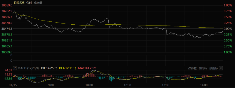 日经225指数当日变化趋势(来自东方财富)。