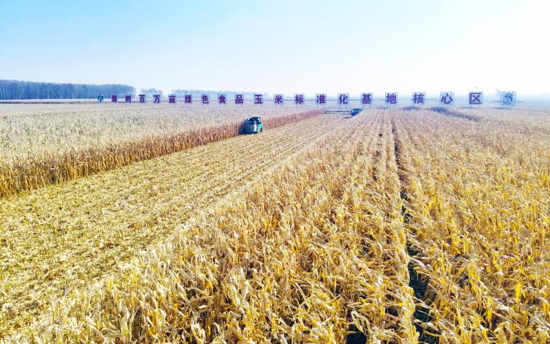 2024年吉林梨树县百万亩绿色食品玉米标准化基地核心区秋收现场。钱文波摄 粮食总产853.2亿斤,稳居全国第四位; 粮食单产971.7斤,居全国粮食主产省第一位; 黑土地保护性耕作面积3800万亩以上,居全国首位; 建设高标准农田1000万亩,是建成面积最多、建设进度最快的一年; 审定高产优质玉米、水稻、大豆新品种257个,认定非主要农作物品种27个; 主要农作物综合机械化率达到94.5%,农业现代化第一方阵地位更加稳固; …… 上下一心,党政同责。岁稔年丰的背后,是勤劳朴实的吉林人以家国情怀激发使命担当,用辛勤的汗水和坚韧的毅力全力守好“大国粮仓”,端牢“中国饭碗”。 一年之计在于春。行进在梨树县乡间,被秸秆覆盖的黑土地一望无际。走进凤凰山农机农民专业合作社大院,映入眼帘的,是金灿灿的“粮垛子”和排列整齐的大型农机具。 合作社入社成员158户,拥有大型农机具74台(套),集约经营土地近15000亩,生产规模从一个小队扩大到2个乡镇的9个村……近年来,合作社带领各村走出了一条自主经营、村民合作共赢的发展道路。 “去年我这1.5万亩地,玉米单产2000斤左右,比10年前增加三成!”谈起效果,全国人大代表、合作社理事长韩凤香高兴地说。 连日来,韩凤香一直在为十四届全国人大三次会议做着准备。“我建议将单垄玉米收割机故障停机保护与倒转功能纳入国家强制生产标准,并明确新标准的适用范围、设定关键指标、配套建立相应的检测方法和评估体系,促进农机行业迭代升级。”韩凤香计划围绕进一步完善农机安全国家强制标准和执法司法衔接协作等方面提出建议。 为切实保护好黑土地这一“耕地中的大熊猫”,近年来,吉林成立了黑土地保护领导小组,设立了黑土地保护管理机构,出台了全国首部黑土地保护地方性法规,实施了“黑土粮仓”科技会战,在全国首创测土配方施肥手机信息服务系统,建立了全国首家黑土地保护与利用院士工作站,为全省粮食产量向千亿斤目标迈进提供了有力支撑。 今年,吉林计划建设高标准农田1000万亩,保护性耕作面积新增200万亩,粮食产量预计达到880亿斤以上。 百尺竿头思更进,蓄势整装再出发。希望的田野上,新一年的耕耘已经开始,新一年的丰收正在孕育,一个不断“升级”的粮食大省正迈着强劲步伐向我们走来。 黑 龙 江 为农业插上“科技的翅膀”