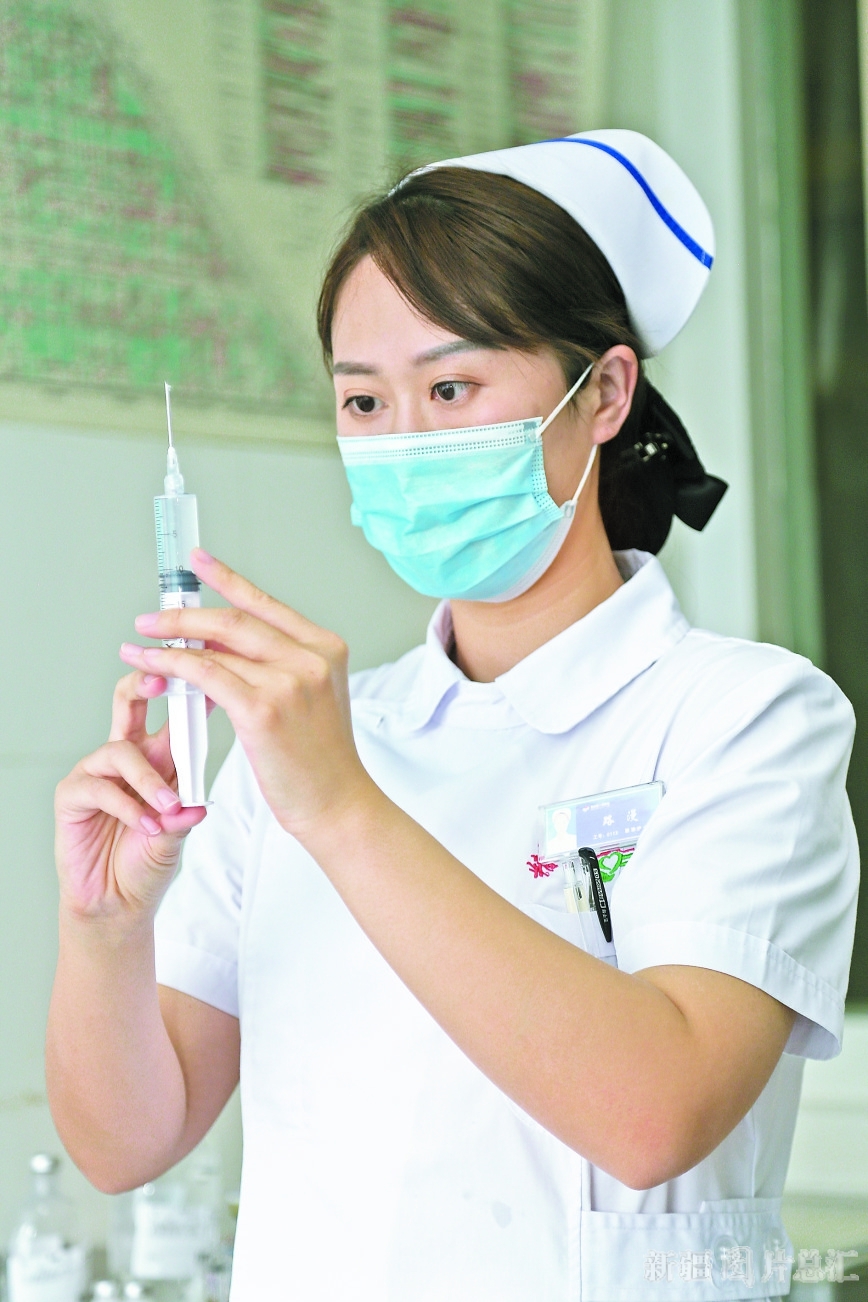 5月11日,精河县人民医院外一科护士长路漫准备给患者打针。 □库尔班江·马木提摄