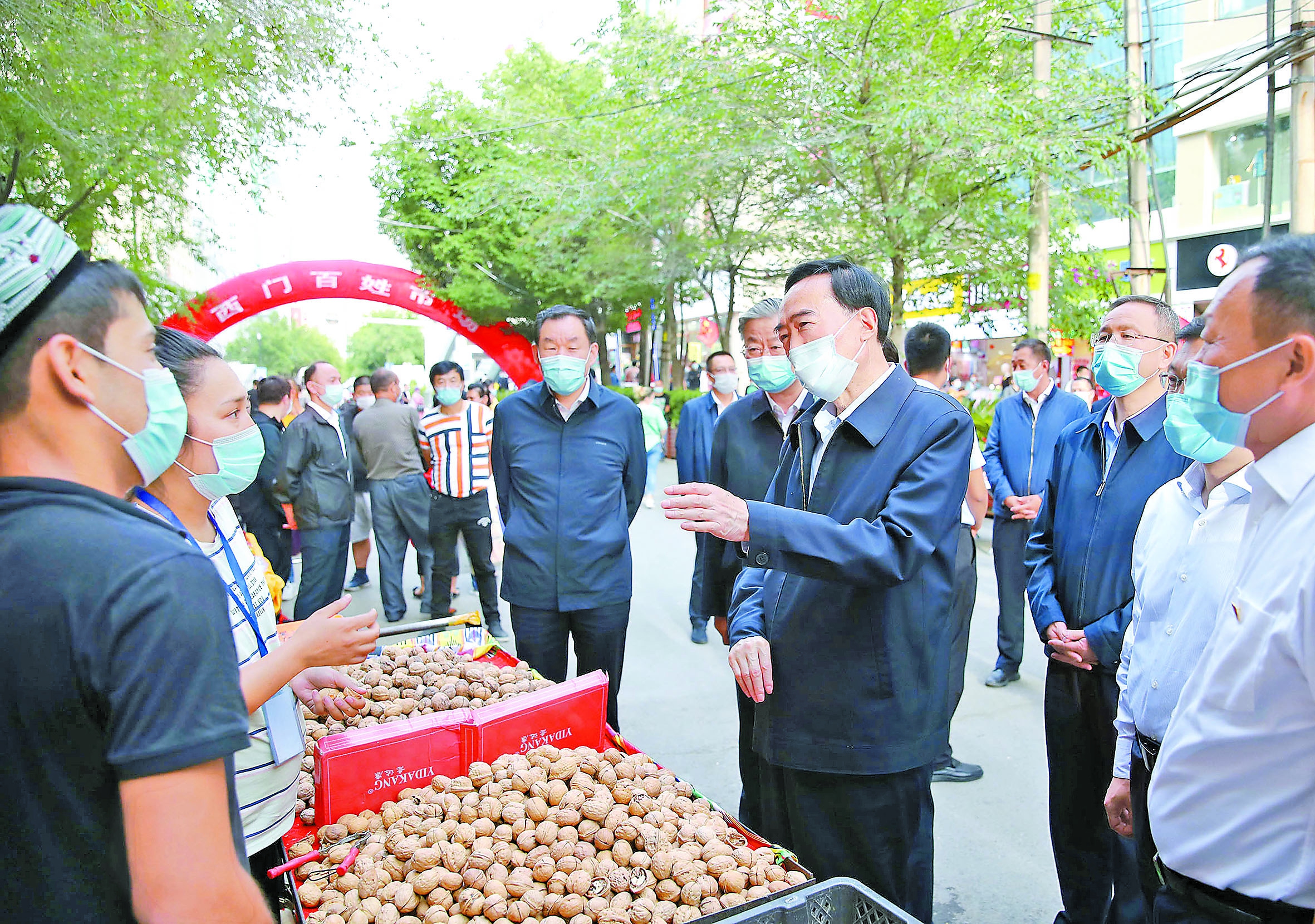 开设百姓市场、利民好物分享集市、便民商品交易市场,提供免费摊位和平价商品,是乌鲁木齐市为多渠道解决困难群体就业创业、推动复业复市采取的一项新举措。市场内,服装鞋帽、日用百货、水果副食等一应俱全。陈全国来到天山西门百姓市场,同管理人员、各族商户亲切交谈,仔细了解经营收入、市场管理等情况。他说,要积极拓宽就业渠道,丰富市场供给,规范经营秩序,加强防疫、卫生和消防管理,努力打造便民、利民、惠民市场。