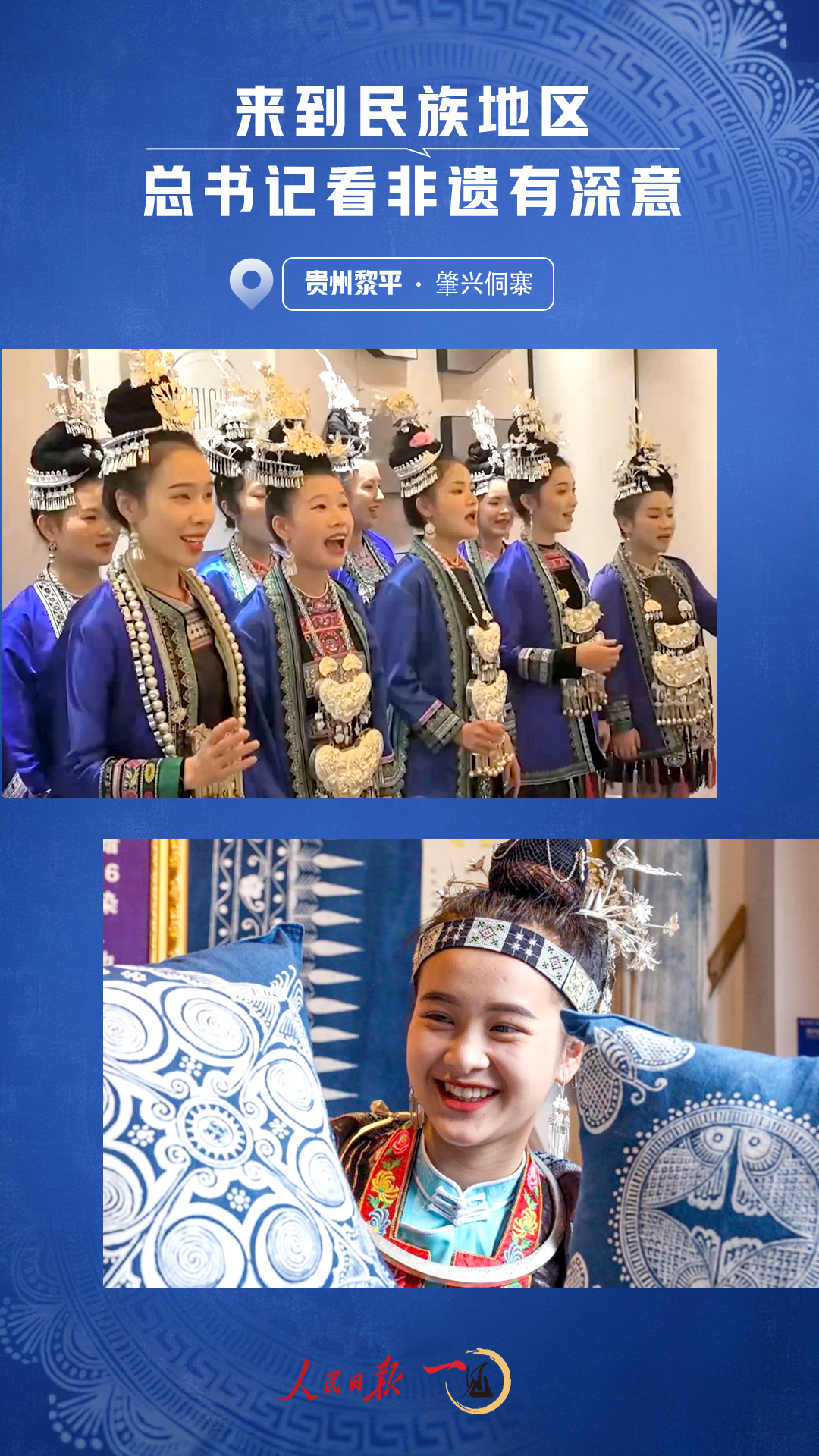 古朴与时尚 在古今穿越中领略黔东南的民族风情,这里有承载儒家底蕴的“仁义礼智信”鼓楼,也有开在油菜花田的非遗时装秀。 日升月落,侗寨千年,古老文明的记忆印刻于此,又在传统与现代的耦合中,催生新的文化生态。 在肇兴侗寨了解保护传承民族传统文化情况,习近平总书记说,吊脚楼、古寨、非遗乐器、侗族大歌、蜡染工艺,这些民族的特色,很古朴也很时尚。 古朴气韵,离不开妥善保护,时尚气息,得益于活态传承。近年来,黔东南州推出侗族大歌百村歌唱大赛等品牌活动,开展传统村落非遗资源深度普查工作,建立非遗资源数据库,让民族非遗生生不息。 2021年在贵州化屋村考察,总书记指出:“苗绣既是传统的也是时尚的,你们一针一线绣出来,何其精彩!” “以古人之规矩,开自己之生面”,传统与时尚的对接,靠的是一代代非遗传承人。 2019年7月,总书记在赤峰博物馆接见《格萨(斯)尔》非物质文化遗产传承人时说:“培养好传承人,一代一代接下来、传下去。” 近日,文化和旅游部确定并公布了第六批国家级非物质文化遗产代表性传承人名单,传承人队伍结构进一步优化,探索古老非遗的当代表达。 文化与产业 蜡刀作笔,蜂蜡为墨,蜡染以至简之色,开出至繁之美。现在,这一指尖技艺与特色经济无缝对接。 在侗乡特色产业基地,习近平总书记观看蜡染工艺流程,对蜡染合作社坚持顾客至上、质量第一的运营理念给予肯定。 非物质文化遗产植根于地方人文土壤,也助力着一域经济发展。 五指山,海南黎族苗族同胞的聚居地,以黎锦为代表的非遗技艺,也是乡村振兴的重要抓手。 2022年4月,习近平总书记走进五指山市毛纳村,察看黎族特色农产品和黎锦、藤编等非物质文化遗产展示,嘱托“搞好非物质文化遗产传承,推动巩固拓展脱贫攻坚成果同乡村全面振兴有效衔接”。 非物质文化遗产既是文化又是产业。依托非遗资源禀赋,创新非遗产业形态,非遗资源也能成为发展动能。 青海圣源地毯集团有限公司,一块块藏毯拉动起就业链条。2021年6月,总书记来这里考察:“藏毯产业不仅有扶贫致富、推进乡村振兴的作用,还有促进民族团结的作用。” 我国民族文化多姿多彩,“非遗+”正在拓宽民族地区致富路,汇聚民族团结向心力。此次在信团鼓楼,总书记高兴地说,民族地区要保留自己的特色文化,在文旅融合中更加彰显它的光彩。 如今,黔东南州推出中国乡村旅游1号公路,民族村寨串珠成链、打造移动非遗盛宴;榕江县“村超”“流量”化为游客“留量”,非遗元素融入赛事、衍生文创畅销热卖……火爆的村寨,火热的文旅,书写“人文经济学”的非遗篇章。 民族与世界 侗歌悠扬,声声入耳。在侗寨门口,身着民族盛装的村民唱起侗族大歌欢迎习近平总书记,总书记饶有兴致地听取侗族大歌的艺术起源、曲调特点、演唱形式等方面介绍。 历经2500多年心口相传,携着“联合国非物质文化遗产”名片,侗族大歌的天籁之音从大山深处飞向广阔天地。 国产动漫《哪吒之魔童闹海》中,多段配乐取材于侗族大歌,空灵之音尽显东方魅力,也在全球成功“圈粉”。 歌声里有文化出海的强音,亦有文化自信的底气。 2022年7月,新疆维吾尔自治区博物馆,总书记与《玛纳斯》传承人交谈,一段对话引人深思。 “你们还遇到什么困难没有?” “我想让全世界了解认识《玛纳斯》。” “是要传播到全世界。它们既属于少数民族,也是中华民族文化宝库中的宝贵财富。中华文化要和世界文化更好地开展交流互鉴。” 非物质文化遗产,一座中外沟通的桥梁。 从“00后”中国少年通过“武术+街舞”的创意表演,在世界街舞总决赛的聚光灯下展现平视世界的开放姿态,到舞剧《咏春》融合咏春拳和香云纱染整技艺两项国家级非物质文化遗产,全球演出200余场叫好又叫座,“最炫民族风”从国内刮向国外。 4年前,总书记在贵州考察时指出“民族的就是世界的”。通过民族非遗这个窗口,我们得以看到一个“世界的中国”。 策划:杜尚泽 撰文:邝西曦 海报:李艳 编辑:王靖远 校检:吴玥 责任编辑:王靖远