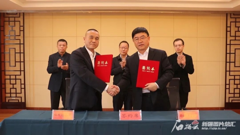 签约仪式上,新疆润泰达农牧业有限公司与呼图壁县农业农村局、新疆西域春乳业有限责任公司、新疆呼图壁种牛场有限公司分别签订《万头高产奶牛标准化养殖基地以租代购合同》《生鲜牛乳购销合同》《战略合作框架协议》。