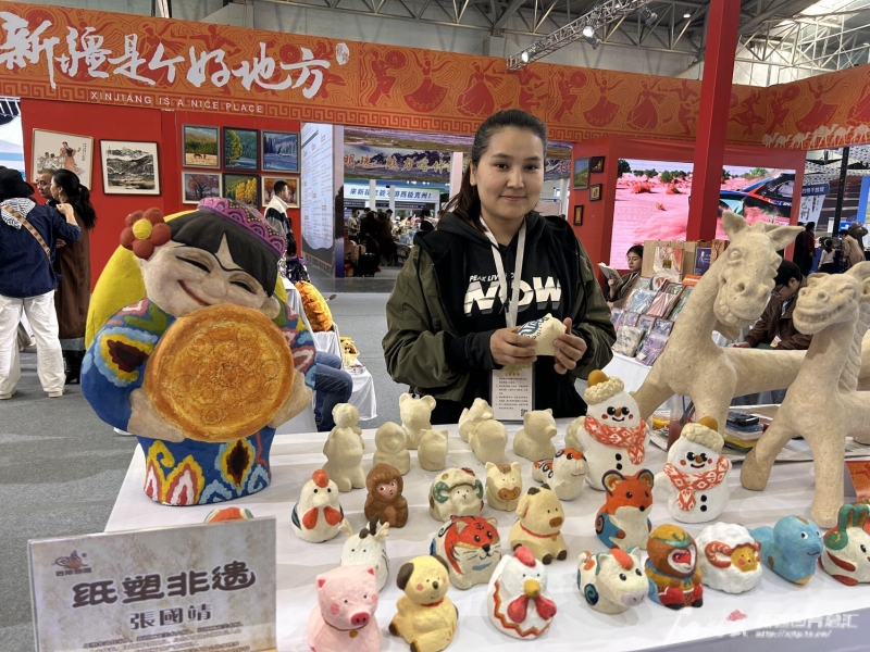 造型可爱的纸塑作品。石榴云/新疆日报 记者张小宓摄 新疆旅游协会培训部副主任凯迪日耶·阿布都肉苏力在现场忙着对接,有不少景区景点想请非遗代表性传承人入住景区,也有景区景点、旅游企业想要量身定制特色纪念品,“这些以前在电视上的非遗项目,真切地出现在了大家眼前,现场感让更多人体验到非遗魅力。” 糖塑哪吒、面塑哪吒、卡通人物版泥彩塑的“幸福巴扎”……很多非遗项目打破了刻板的印象,变得时尚化,吸引着年轻群体。 市级糖塑非遗代表性传承人刘孝卿,在锅里轻轻搅动糖稀,手起糖落,不到2分钟时间,一个活灵活现的哪吒就做好了。还在一边晾凉定型,就有几个小观众抢着预订。 捏、搓、揉、捋、擀,点、切、刻、划,乌鲁木齐市级非物质文化遗产面塑项目代表性传承人怀元辰,将桌面上彩色的面团变成令人赏心悦目的作品。跳舞的少女、骑毛驴的阿凡提、驯鹰的老人以及卡通版哪吒、敖丙,最吸引人的是一队骆驼。