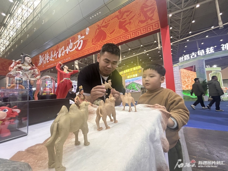 石榴云/新疆日报 记者张小宓 3月23日,在2025新疆文化旅游产业交易博览会暨第六届新疆春季旅游博览会、第二届新疆博物馆技术和文物保护博览会(以下简称春博会)现场,来自全疆各地的非遗代表性传承人指尖翻飞,捏出惟妙惟肖的面塑哪吒,将杏木块雕刻打磨成光滑的木勺……吸引着观众们“上手”体验,也吸引着旅游企业抛出橄榄枝谈合作。 自治区文化和旅游厅打造了“新疆是个好地方”非遗集市,邀请了21位非遗代表性传承人现场展示、制作蛋雕、泥彩塑、沙粒画、掐丝珐琅、锔瓷修复等21项非遗。