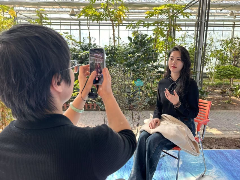 4月1日,新疆农业博览园蝴蝶兰馆内,网络主播正在现场直播卖花。常晓娟摄 如果说新疆农业博览园是从观光农业到沉浸式体验的升级,那么传承数百年的牧民转场则成为乡村旅游新IP。 日前,短视频《马来西亚姑娘的新疆“慢”生活》登上热搜。视频中,马来西亚姑娘苏韵雯讲述自己2024年5月在昭苏县体验牧区转场后爱上乡村民俗旅游的故事,今年春季转场她再次前来。她策马赶羊、在牧民定居点制作奶酪的场景,吸引众多网友留言“下次去新疆也要体验转场”。