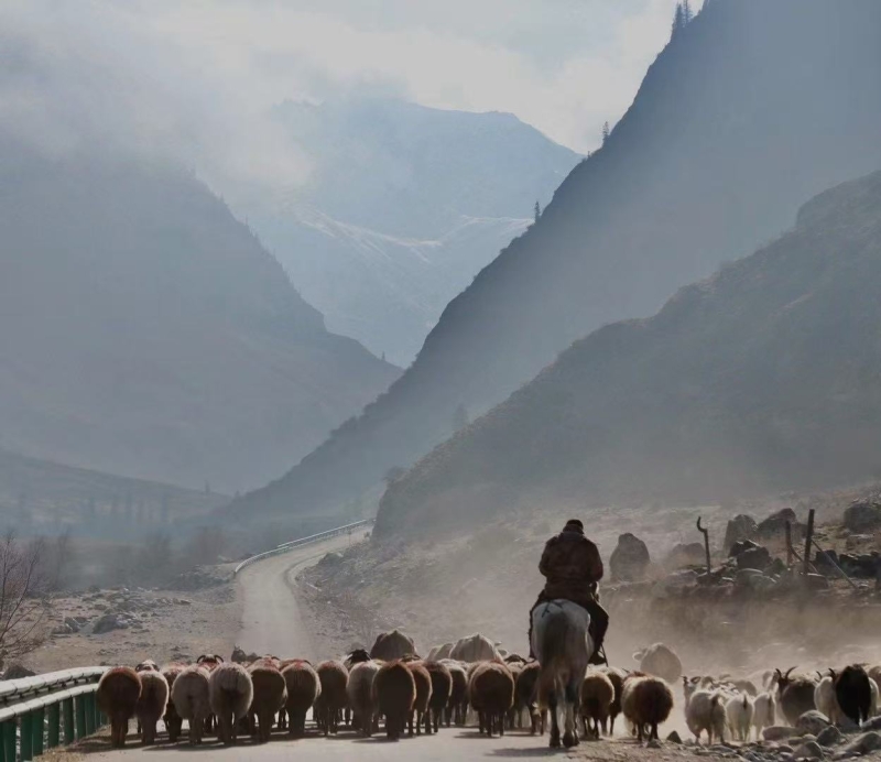 昭苏县喀夏加尔镇森塔斯村村民正在开展春季转场。努尔曼·努尔卡勒摄 “苏韵雯是我首批顾客,新疆旅游发展让我和家人看到乡村民俗旅游的前景。去年大学毕业后,我回到家乡喀夏加尔镇森塔斯村担任旅游管家,设计路线、教授骑马、组织游客体验转场和牧民生活。”牧民努尔曼·努尔卡勒说。 努尔曼发现,随着新疆旅游宣传力度加大,更多游客愿意尝试新业态。“如今转场牧道多为柏油路,牧民定居点网络全覆盖,自媒体展示的现代化牧民生活让游客跃跃欲试。”为此,他不断创新游客参与方式,让游客在玉湖、夏塔等景区观赏美景时“偶遇”转场。马鞭一挥即可参与赶羊,在家访点与牧民同吃同住。自去年5月起,他已接待700多名转场体验游客。近日他刚送走十余人的新加坡团队。