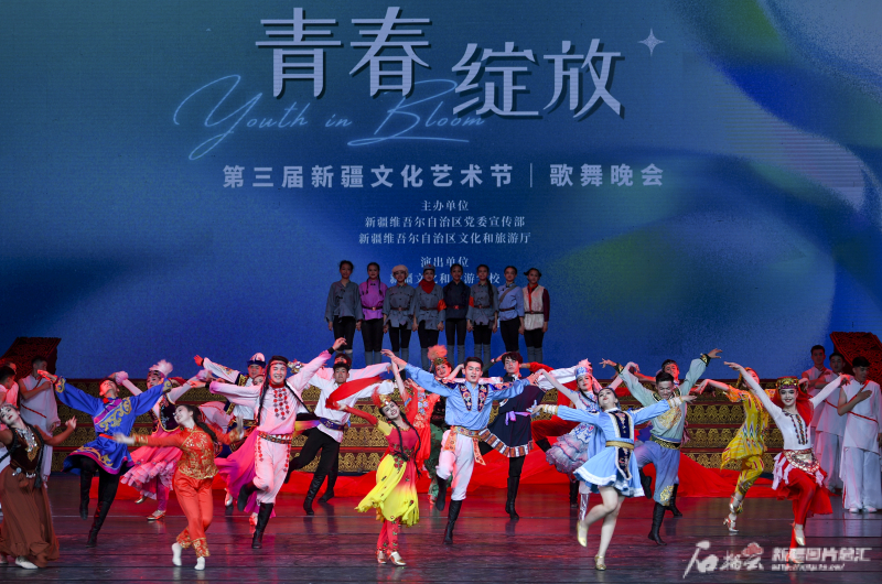 石榴云/新疆日报讯(记者 汤永摄影报道)4月17日晚,第三届新疆文化艺术节展演剧目《青春・绽放》在新疆艺术剧院剧场精彩上演。 晚会以“青春”为底色、“绽放”为旋律,紧扣“七彩铸同心 喜迎70周年”主题。新疆文化和旅游学校的150名文旅学子带来14个精品节目,涵盖歌舞、声乐、器乐、杂技、时装表演等艺术形式,为观众呈现了一场精彩绝伦的艺术盛宴。