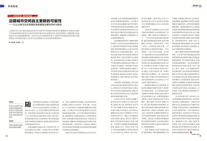 在治理格局向协同化、精细化转型的背景下,社区作为社会治理的基本单元,是铸牢中华民族共同体意识的重要场域,城市更新需要以公众参与社区微更新作为自主更新发展的起点。近年社区更新的重点转向利益再分配的治理过程,聚焦小微空间更新与治理协同。城市更新本质上是通过空间再生产实现治理关系重构的过程,其核心在于构建“空间改造—治理创新”的双向互动机制。这种互动机制的关键在于引导居民完成从治理客体到治理主体的身份转变,通过参与式规划、协同式营造等路径,实现个体利益与公共价值的有机统一。