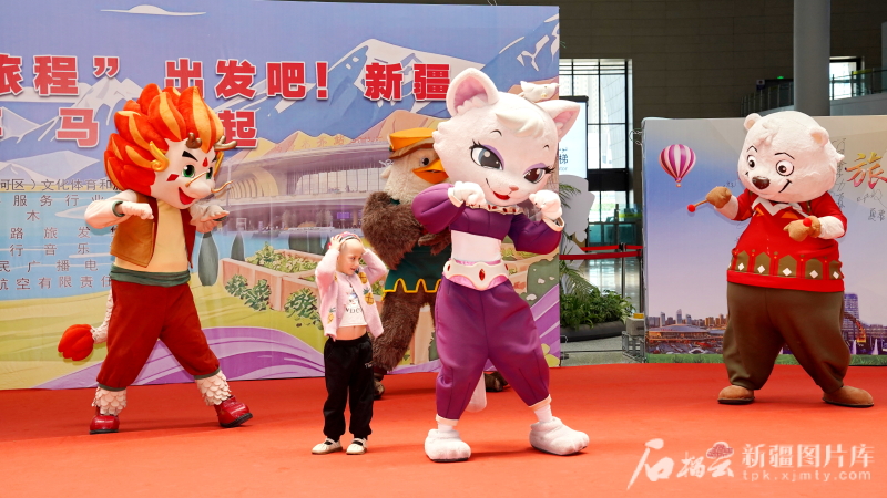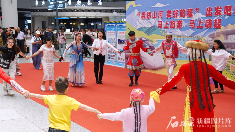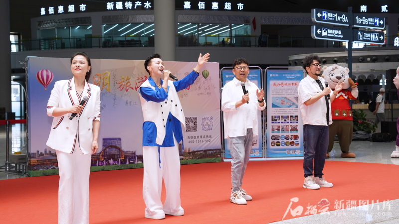石榴云/新疆日报讯(记者 秦梅花摄影报道)在第15个“中国旅游日”即将来临之际,一场活力四射的“锦绣山河 美好旅程”出发吧!新疆马上旅游、马上嗨起快闪活动在乌鲁木齐站精彩“唱响”。此次活动由新疆旅游服务行业商会与乌鲁木齐经开区(头屯河区)文化体育和旅游局主办,新疆铁路旅游发展集团有限公司、乌鲁木齐航空有限责任公司等多部门共同协办,用美妙歌声、可爱玩偶IP以及特色专列推介,点燃了夏日旅游热情。