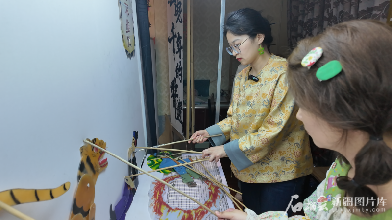 石榴云/新疆日报记者 闫啸天 幕布后的灯光亮起,牛皮雕刻的人物在幕布上跳跃。李玮的双手操控着3根细竹签,手腕一抖,皮影人便挥起长枪,翻身腾跃。幕布前,观众屏息凝神,仿佛被带入另一个时空。 5月17日,在昌吉有戏盖碗茶皮影戏剧场,李玮演绎的《武松打虎》《西游记》等接连上演,包袱不断,赢得满堂喝彩。 这是剧场的日常一幕。李玮是这里的负责人,也是皮影戏的传承者。11年前,她第一次看到皮影戏时,就被这种古老的艺术吸引。“2000多年的东西,还能这么活灵活现。”