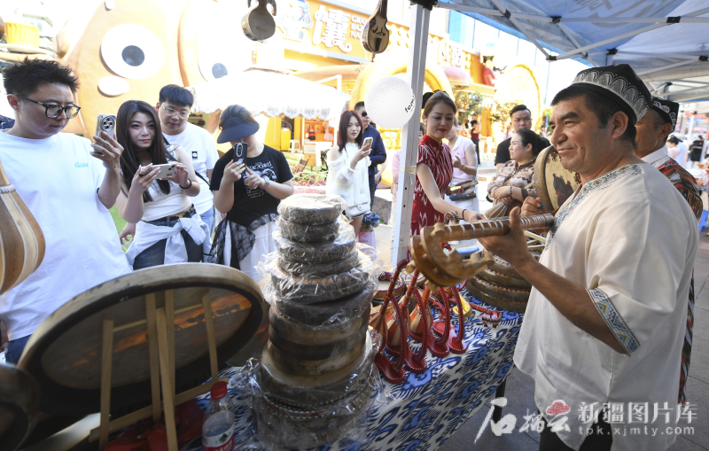 石榴云/新疆日报讯(记者 汤永摄影报道)5月16日,新疆国际大巴扎步行街热闹非凡,一场精彩的“非遗体验互动展”吸引了众多游客驻足,体验民间艺术的质朴与魅力。