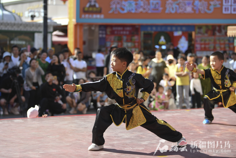 5月16日,独具特色的哈萨克擀毡展台。 此外,萌娃们登台表演京剧、武术,一板一眼的唱腔、身姿矫健的动作,展现出文化传承的力量。