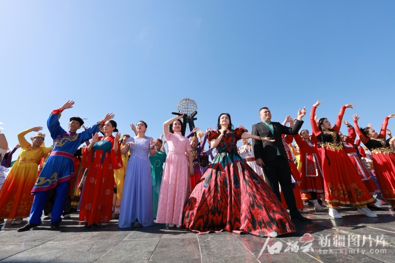 5月17日,车队在亚洲大陆地理中心标志塔下集结。 随后,亚洲大陆地理中心标志塔下的主题展演将活动推向高潮。300名身着各民族服饰的演员,以多声部合唱的形式,深情演绎《青春新疆》《美丽的乌鲁木齐》《花开中国》等经典歌曲。歌声感染了在场每一位游客,大家纷纷自发加入合唱。演出最后,演员与游客手拉手共跳麦西热甫,来自四川的情侣李霞和吴磊开心地说:“舞蹈简单易学,大家一起牵手转圈,这种快乐是发自内心的!”