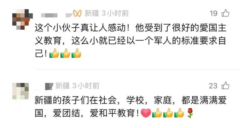 5月11日,巴里坤县巴里坤古城景区内,发生了令游客卫焘热泪盈眶的一幕。 来自北京的卫焘是一名旅游博主,热衷于拍摄并记录新疆游途中的所见所闻所感,当日,巴里坤县晴空万里,卫焘和同行好友在巴里坤古城景区内游玩途中,偶遇了一群骑自行车的新疆男孩,在愉快地交谈之余,卫焘提议为这群孩子买饮料,正当小朋友们在店里挑选商品时,其中一个男孩却严词拒绝了主播热情的邀请。 “你为什么不愿意吃我们买的东西?”面对卫焘好友的提问,小男孩脱口而出:“我想当兵!” “想当兵就不能吃我们买的东西吗?”卫焘的好友追问道。 “当兵就要尊重老百姓,老百姓给我们递的东西不能要……”小男孩认真地说道。 此话一出,卫焘才真正理解了男孩的坚定和执着,原来,男孩对理想的坚定早已让他学会用当兵的标准来严格要求自己。“假如发生灾难,我们去救灾的时候,他们给我们捐那些吃的,我们也只能勉强收下。”小男孩随后又解释道。 卫焘热泪盈眶,他说:“这么小的孩子都能有这样的觉悟,新疆之旅让我遇到了很多纯真灿烂的少年,他们给予我感动,也给我前行的动力,在这个嘈杂纷乱的世界里,希望我可以一直像他们一般眼中有光,心如赤子。”卫焘说道。 这段视频发布到网络后,随即得到了网友们的称赞和评论,小男孩对理想的坚定追求令人为之动容,网友们纷纷表示,这位了不起的小孩哥是当兵的好苗子。
