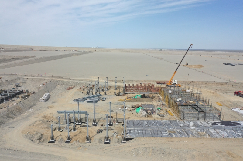 石榴云/新疆日报记者 拍热扎提·阿不都 5月15日,塔克拉玛干沙漠东南部,南疆首个千万千瓦级“沙戈荒”风光火储外送基地项目——“疆电外送”第四通道电源项目建设如火如荼。“1455亩场地平整作业已完成,厂外‘三通’(通水、通电、通路)工程已完成通水、通路,月底将完成通电,煤电项目主体首仓混凝土浇筑预计6月底完成。”三峡集团新疆分公司若羌现场负责人王亮说。 当天,“大国工程看新疆”主题采访团来到阿尔金山脚下,探访首条布局在新疆南疆的“疆电外送”通道。现场,工程机械轰鸣作响,紧张有序地推进各项建设工作。