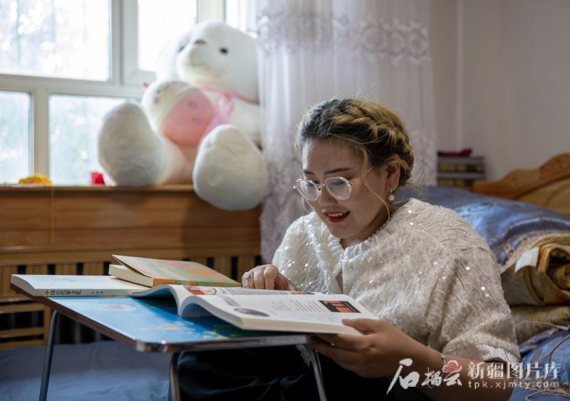 阿亚提汗·别克吐在看书。图/受访者提供 “妈妈告诉我,2岁时我生了一场重病,没能及时治疗,就瘫痪了。”阿亚提汗说,父母在山里放牧,3岁起,她便跟着外公外婆生活,外婆给她买了轮椅,外面奔跑的小伙伴总会抢着推她一起玩,在欢乐的氛围中,慢慢接受了现实。 由于不能走路,上学不方便,阿亚提汗在小学五年级时便退学,这时,阅读为她打开了一扇窗。“外公外婆是老党员,经常带着我看红色电影,家里的报纸、刊物不断,村里第一个大学生是我表姐,还给我送了好多书。”阿亚提汗说。 从史诗《玛纳斯》、张爱玲的作品到史铁生的《我与地坛》,阿亚提汗从很多书本里主人公不服输、不向命运低头的故事中汲取能量。她还从表姐送的字典上学习认字,边读边写一些文章,慢慢提升写作水平。