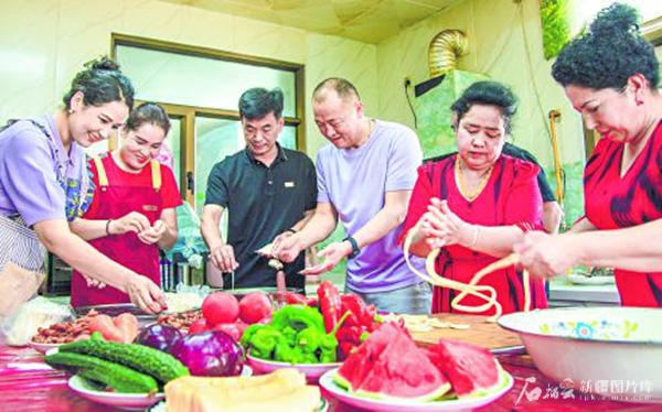 6月5日,泽普县波斯喀木乡库其村驻村工作队队员、村干部和村民一起做美食、聊家常,共话民族团结情。 张昀摄
