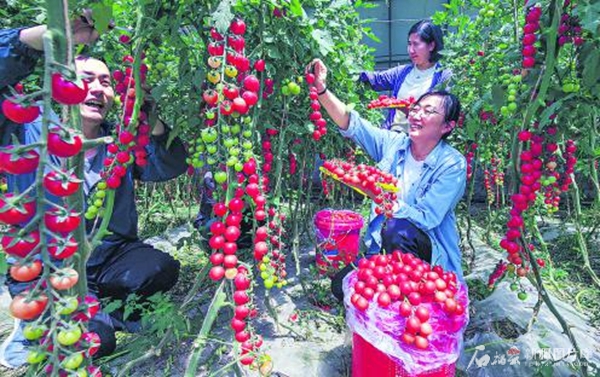 6月6日,居民在察布查尔锡伯自治县良繁场蔬菜基地采摘小番茄。古尔邦节假期,当地不少居民走进乡村,体验田园生活。 华岩明摄 繁荣和谐美丽的新疆,是我们共同的家园。温暖的大家庭里,每一个节日都是共同的欢乐时刻,留下了许多珍贵的回忆。