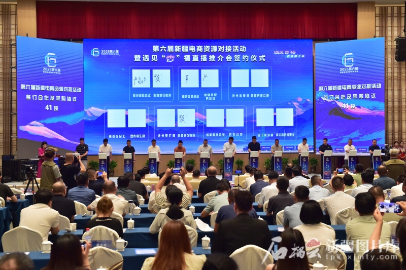 6月12日,推介会现场集中签约了41个电商项目,成为此次活动一大亮点。 据第三方统计数据显示,2024年新疆网络交易和网络零售额较2021年分别增长1.3倍和1.4倍。今年1—4月,新疆直播网络零售量4492万件,直播观看人数达4.9亿人次,充分彰显了新疆电商产业的蓬勃活力。自治区商务厅通过积极对接淘宝、京东、抖音等五大电商平台,全面开通线上“以旧换新”渠道,截至6月10日,带动消费8.4亿元。 伊犁哈萨克自治州、昌吉回族自治州、巴音郭楞蒙古自治州在活动中分享了各自的电商发展经验,为全疆电商发展提供了有益借鉴。活动现场还宣布了新疆全国农村电商带头人以及新疆2024网络TOP10优势电商企业名单,进一步激发了行业从业者的积极性和创造力。 本次活动的一大亮点是现场集中签约了41个电商项目,涵盖物流配送、农产品销售、供应链协同等多个领域。这些项目的签约,为新疆电商产业发展注入了强大动力,推动新疆电商产业向更深层次、更高水平迈进。 在会议议程中,浙江、甘肃、新疆等地电商企业分别就电商发展形势作了专题报告,从行业趋势、技术创新、市场开拓等方面为参会者带来了深刻的见解和启发。与会代表还参加了国家商务部电子商务司专题培训,进一步提升了电商业务能力和政策理解水平。此外,产销对接推介会为供需双方搭建了直接沟通的桥梁,促进了资源的高效对接和合作。自治区投资发展中心推荐了新疆优质产品,让更多参会企业和嘉宾了解到新疆特色产品的独特魅力。