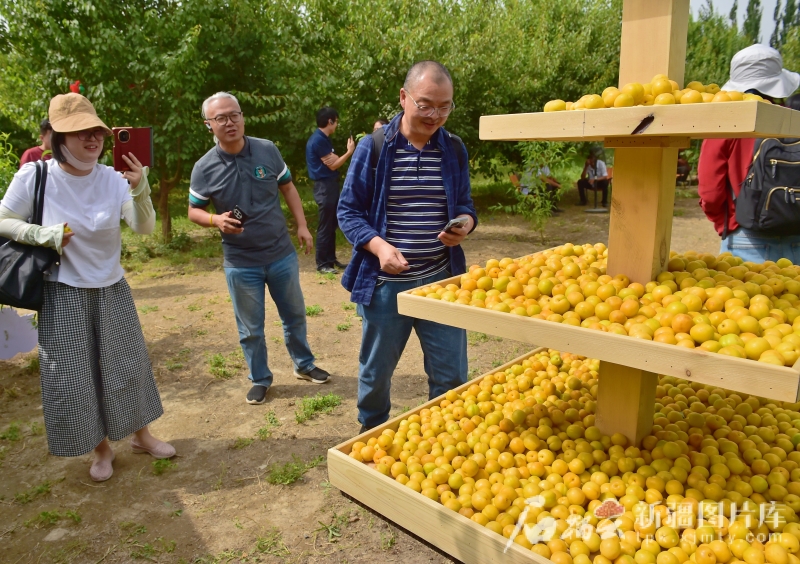 6月12日,参会代表观摩库尔勒市哈拉玉宫镇白杏园。