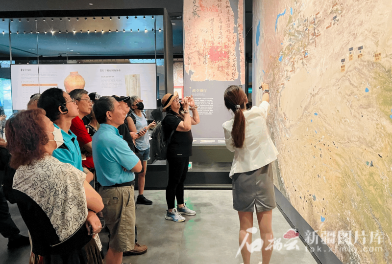 6月10日,台湾蓝天访疆团参观自治区博物馆。石榴云/新疆日报记者 司路路摄 6月13日至14日,访疆团走进伊犁哈萨克自治州恰西风景区的原始森林和那拉提辽阔壮美的草原。“这就是‘风吹草低见牛羊’的真实写照啊!”团员们沉醉于新疆的自然之美。 在伊宁市喀赞其民俗风情街与六星街,雕花门窗的维吾尔族民居前,欢快的手鼓声响起,身着艳丽服饰的舞者热情邀访疆团共舞。“来尝尝刚出炉的烤包子!”街边摊主热情招呼着。咬一口酥脆金黄的烤包子,听着热情洋溢的旋律,新疆人文风情的独特魅力给大家留下深刻记忆。 6月16日,旅程在新疆国际大巴扎画上句号。艾德莱斯绸、和田玉工艺品等琳琅满目的商品令人目不暇接。访疆团与热情好客的商家讨价还价,感受到了新疆社会的繁荣与活力。 临别之际,访疆团团员纷纷表示,来之前充满好奇,离开时满是不舍。新疆的美远超想象,这里的多元文化汇聚,社会和谐稳定,人们热情好客,生活美好幸福,会把在这里的所见所闻告诉家乡的朋友,希望今后两岸能更多交往交流。 这场跨越数千里的交流,不仅增进了台湾同胞对新疆的了解,更为两岸同胞心灵相通搭建起坚实桥梁,为深化两岸交流合作注入新动力。