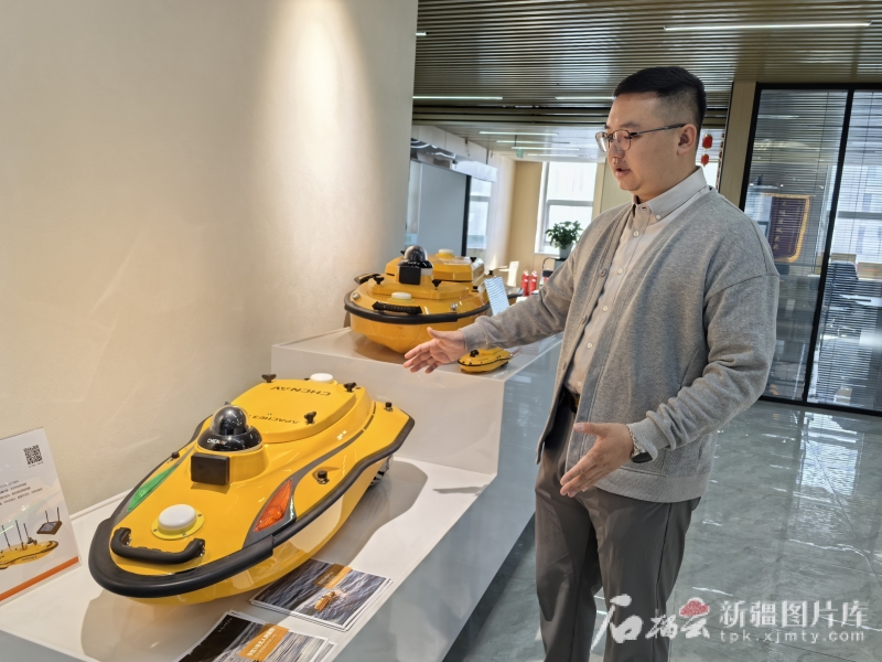 6月3日,新疆软件园企业上海华测导航技术股份有限公司新疆子公司总经理唐伟在介绍公司产品。石榴云/新疆日报记者 赵悦摄