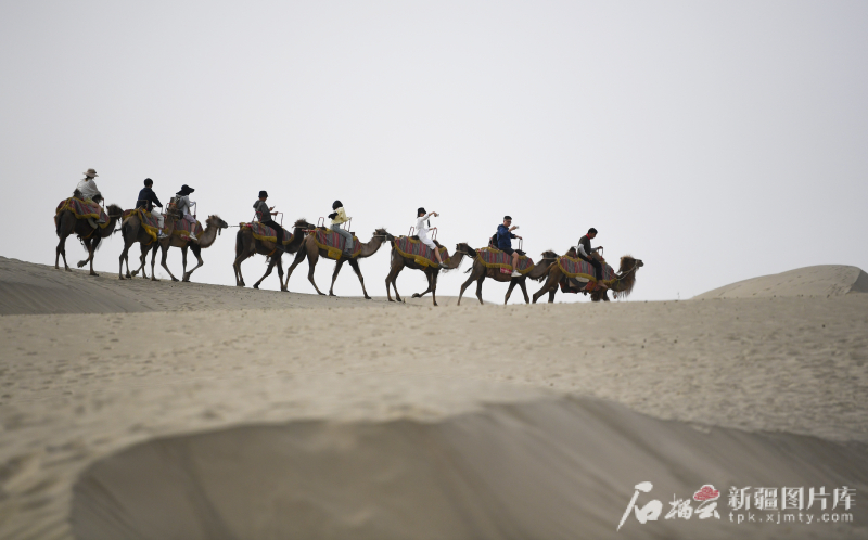 6月17日,游客在景区体验骑骆驼,领略大漠风光。 该景区依托北纬39°沙漠资源,打造集越野、运动、康养、露营于一体的综合旅游区,2024年12月成功创建国家4A级旅游景区。