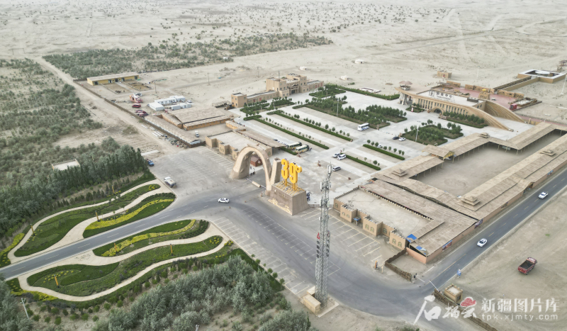 俯瞰麦盖提县塔克拉玛干N39°沙漠旅游景区(6月17日无人机拍摄)。