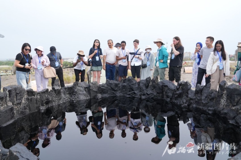 7月30日,北京大学留学生打卡“大油泡”。 据了解,“理解当代中国 感知开放新疆”研学活动将持续到今年十月,届时还将有清华大学、中国人民大学、北京外国语大学、浙江师范大学等高校留学生走进新疆。